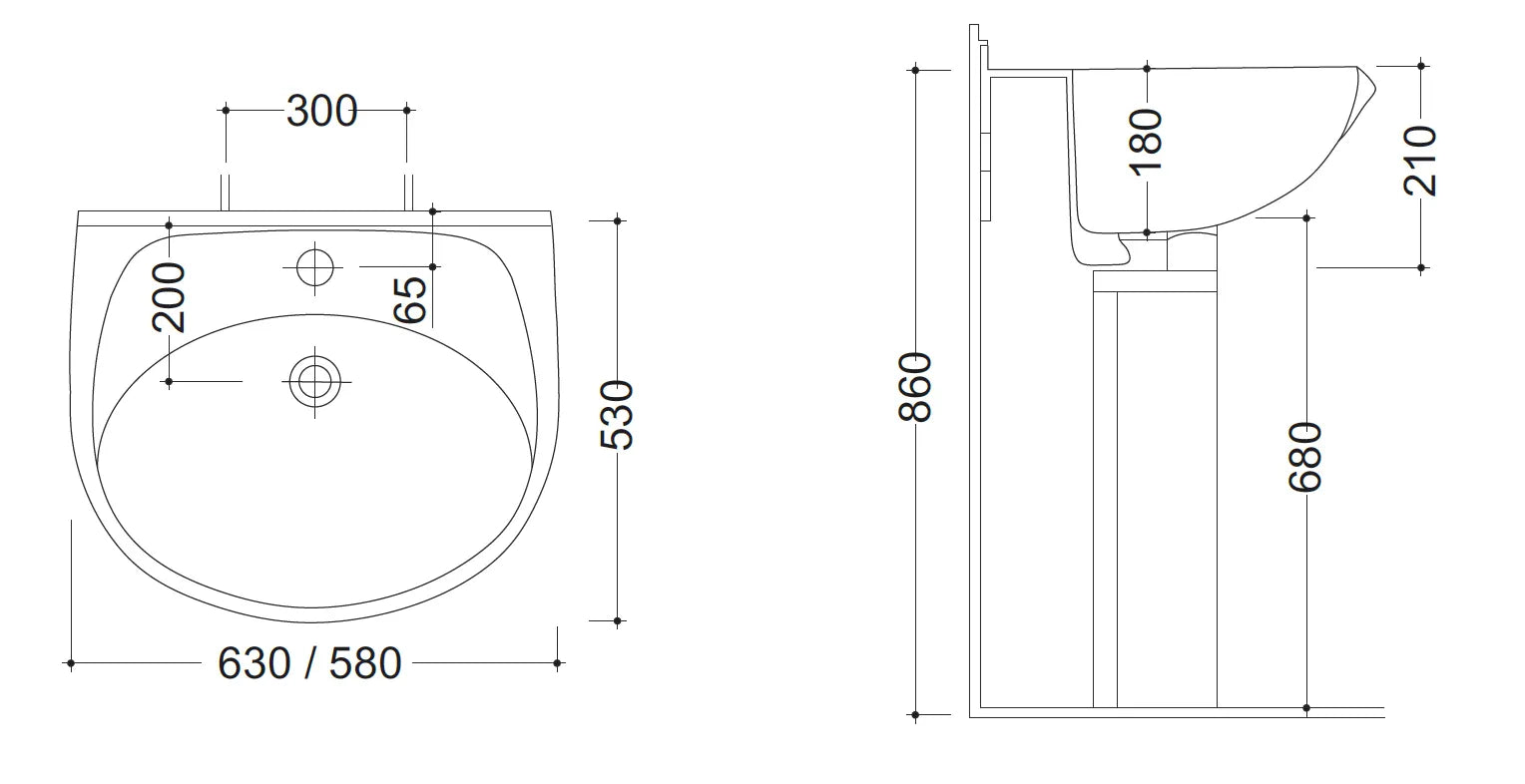 Lavabo Champagne 63 Cm In Ceramica Senza Colonna (Solo Lavabo)