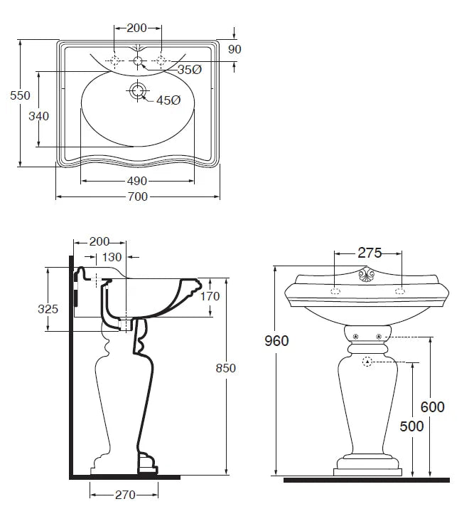 Azzurra - Lavabo Con Alzatina 70 Cm Porcellana Bianco - Serie: Jubilaeum (Senza Colonna)