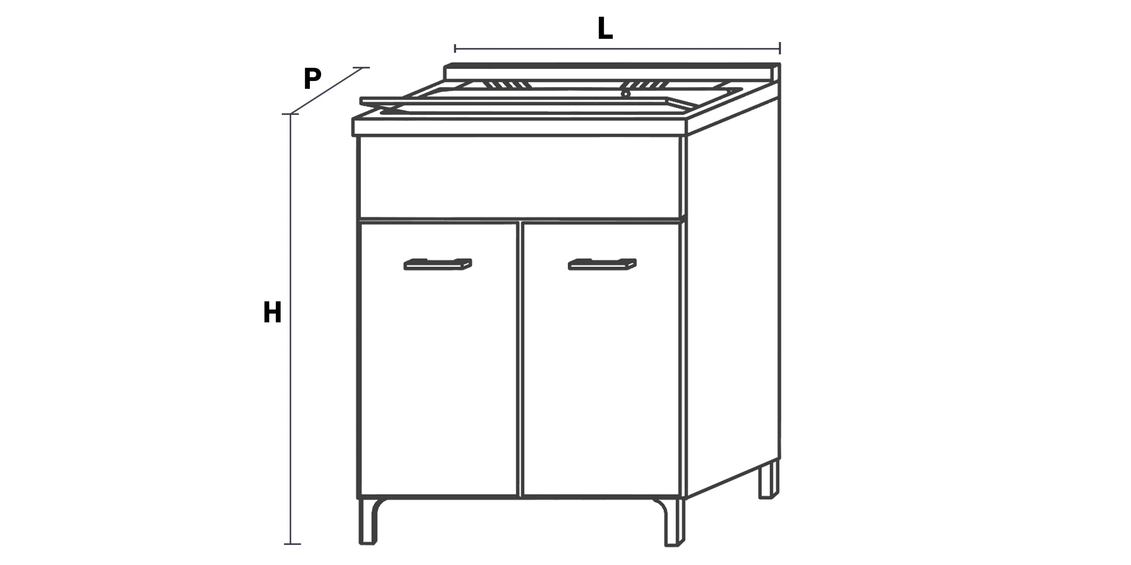 Savinidue - Lavatoio In Resina Con Mobile In Legno L.60 X P.50 - Colore: Rovere Fumo