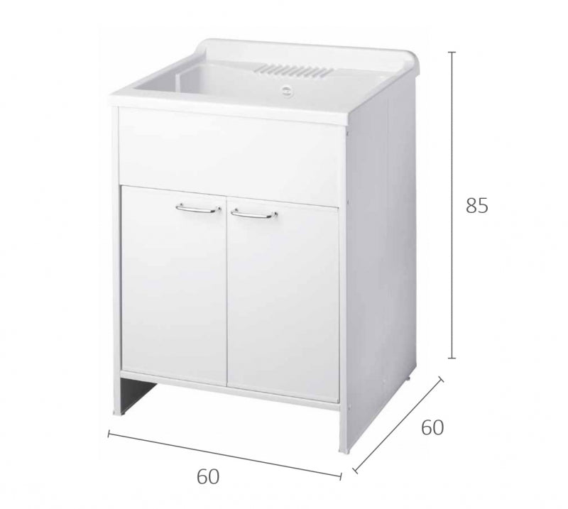 Lavatoio In Resina Con Mobile 2 Ante In Pvc 60x60x85 CM (LxPxH) BIANCO
