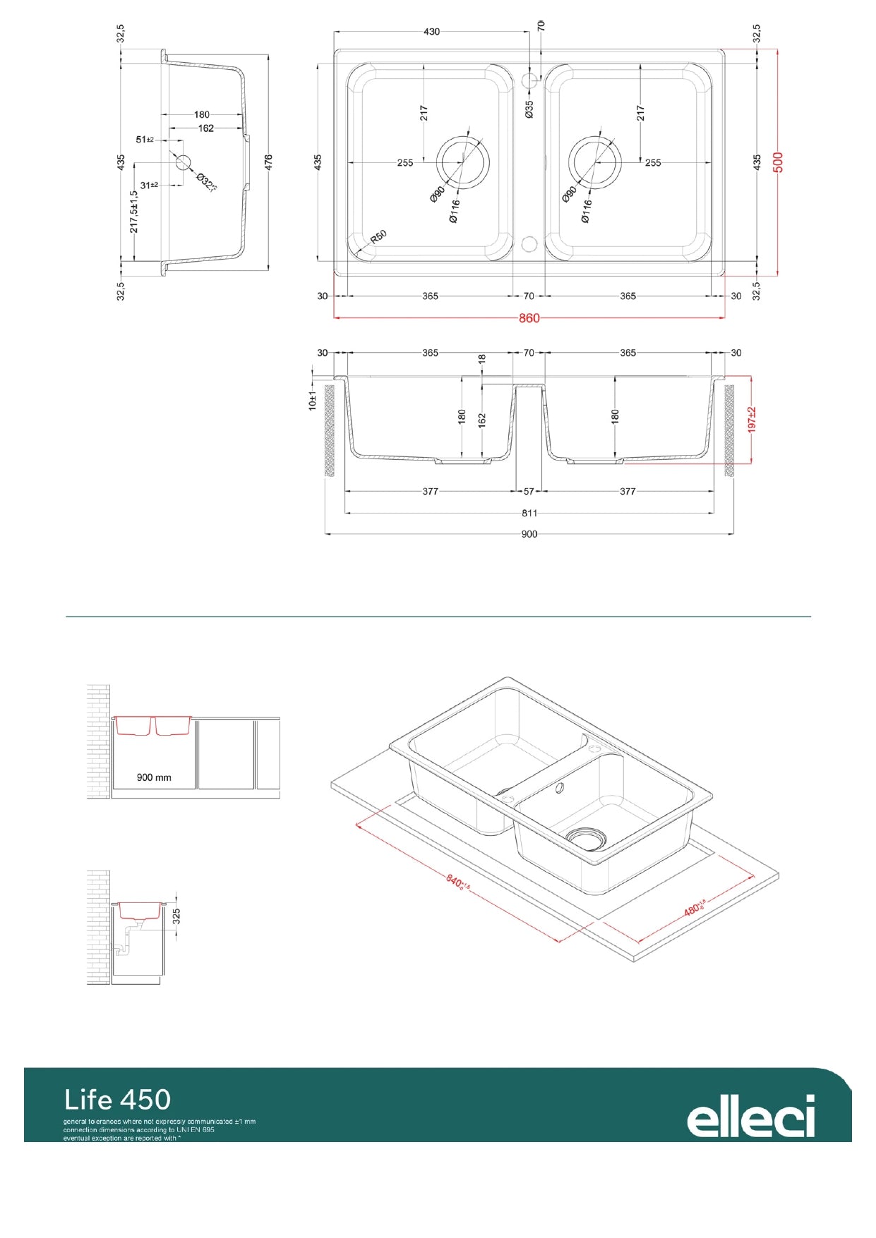 Elleci - Lavello da incasso in composito Granitek 86x50 cm 2 vasche - Colore: Bianco - Modello: Life Per saperne di più