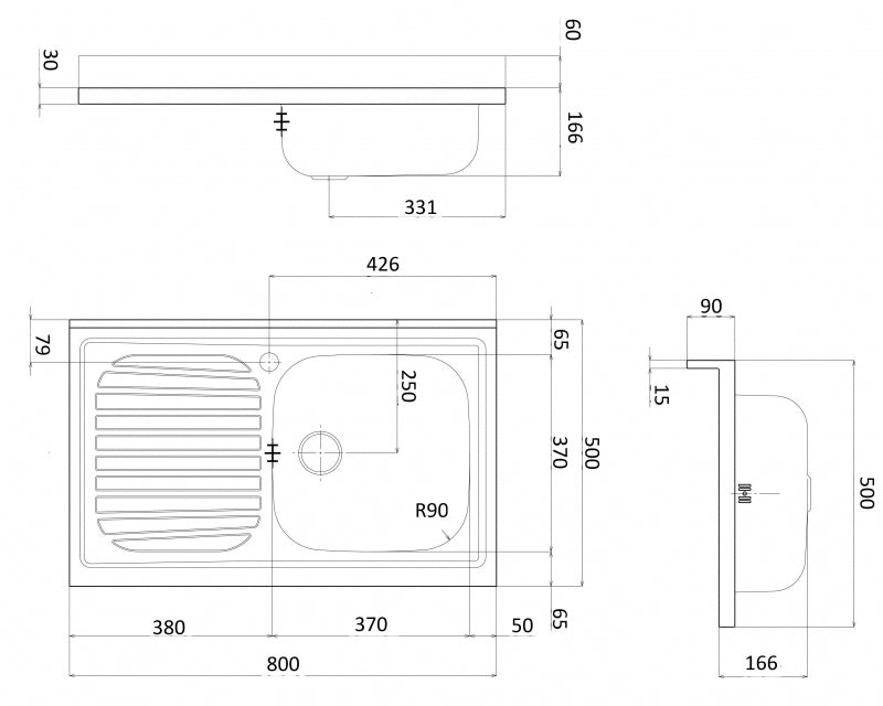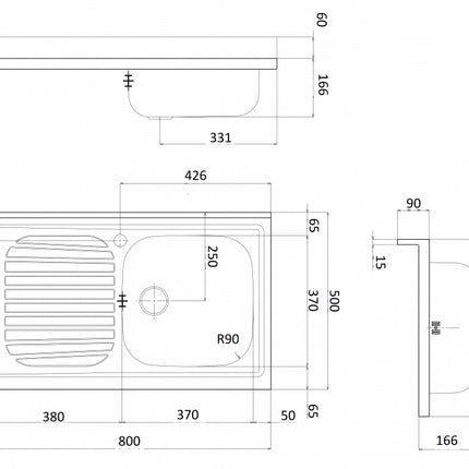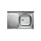 Lavello inox da appoggio con bordino 80 cm 1 vasca a destra con gocciolatoio a sinistra