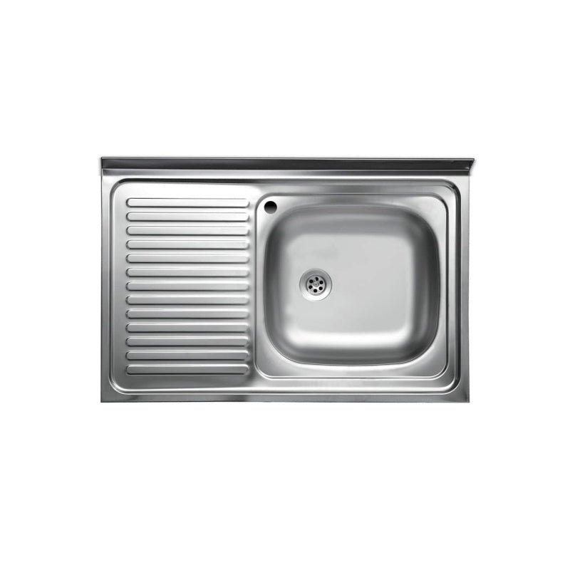 Lavello Cucina In Acciaio Inox Ad Appoggio Da 80 Cm Con Bordino Posteriore 1 Vasca A Destra Con Gocciolatoio A Sinistra