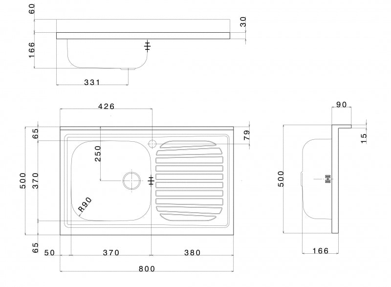 • Profondità vasche: 15 cm