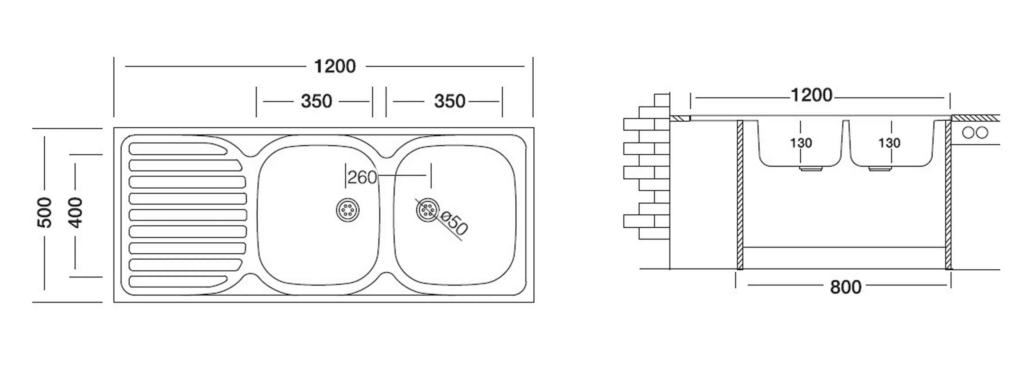 Lavello Cucina In Acciaio Inox Ad Appoggio Da 120 Cm Con Bordino Posteriore 2 Vasche A Destra Con Gocciolatoio A Sinistra