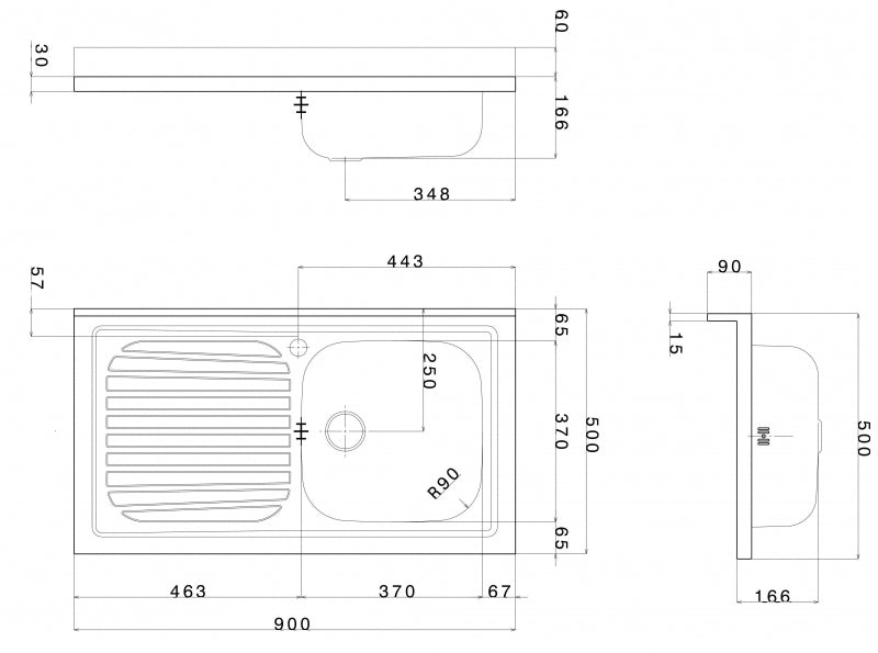 Lavello Cucina In Acciaio Inox Ad Appoggio Da 90 Cm Con Bordino Posteriore 1 Vasca A Destra Con Gocciolatoio A Sinistra