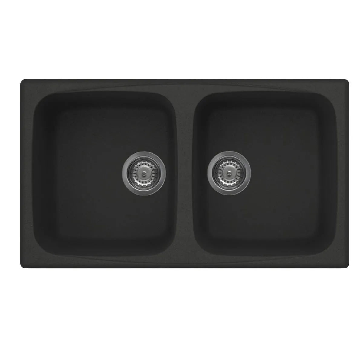 Elleci - Lavello Cucina In Vetroresina Granitek Da Incasso 86x50 cm A 2 Vasche Colore Nero - Serie Master 450 - Codice: LGM45040