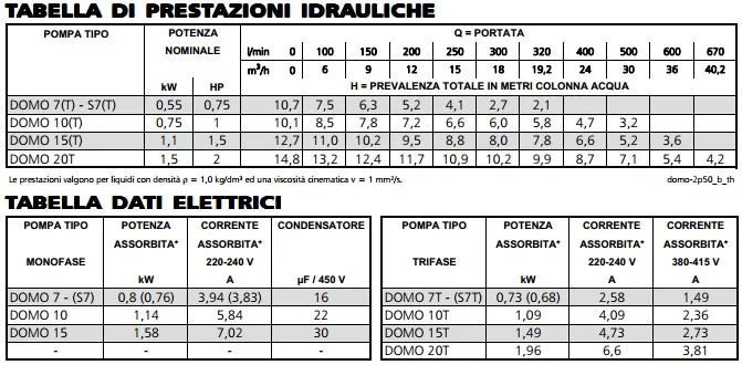 Le elettropompe sommergibili per drenaggio di acque sporche della serie DOMO sono disponibili sia con girante bicanale sia con girante vortex (DOMO VX). Possibilità di pompaggio di solidi in sospensione fino a 50 mm (35 mm per DOMO 7 e DOMO 7VX). Quattro versioni base con potenze nominali da 0,55 a 1,5 kW. Sistema di tenuta DRIVELUB SEAL SYSTEM.