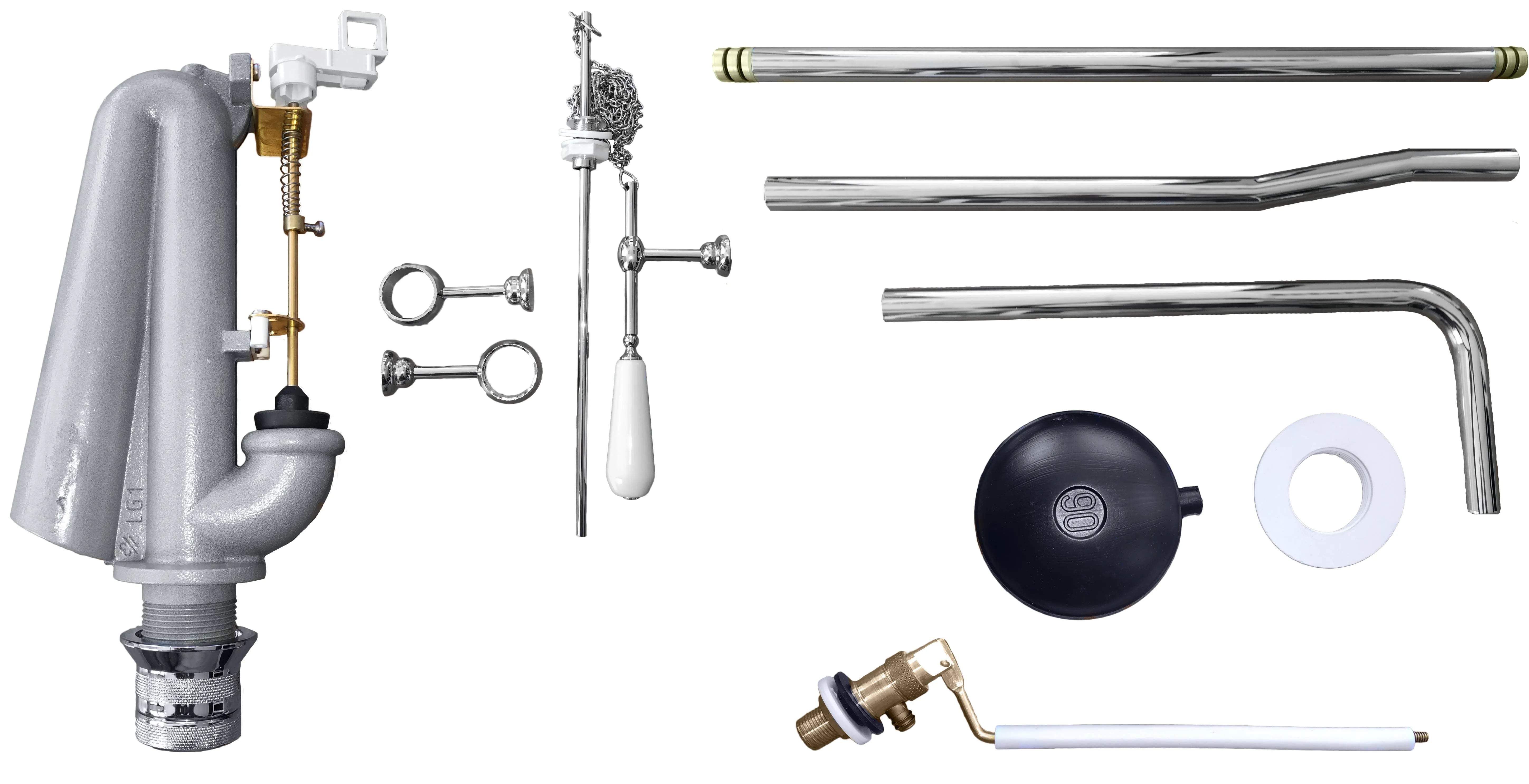 Meccanismo in ghisa per cassetta alta completo di tre tubi, kit catenella ottone cromato e pull in ceramica. Il meccanismo... Per saperne di più
