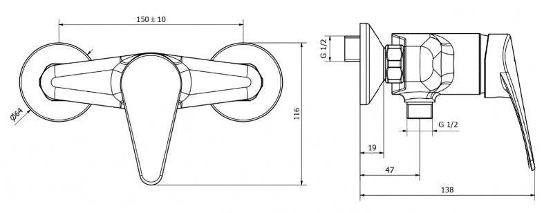 Teorema - Miscelatore Doccia Esterno Cromato - Serie: T-One