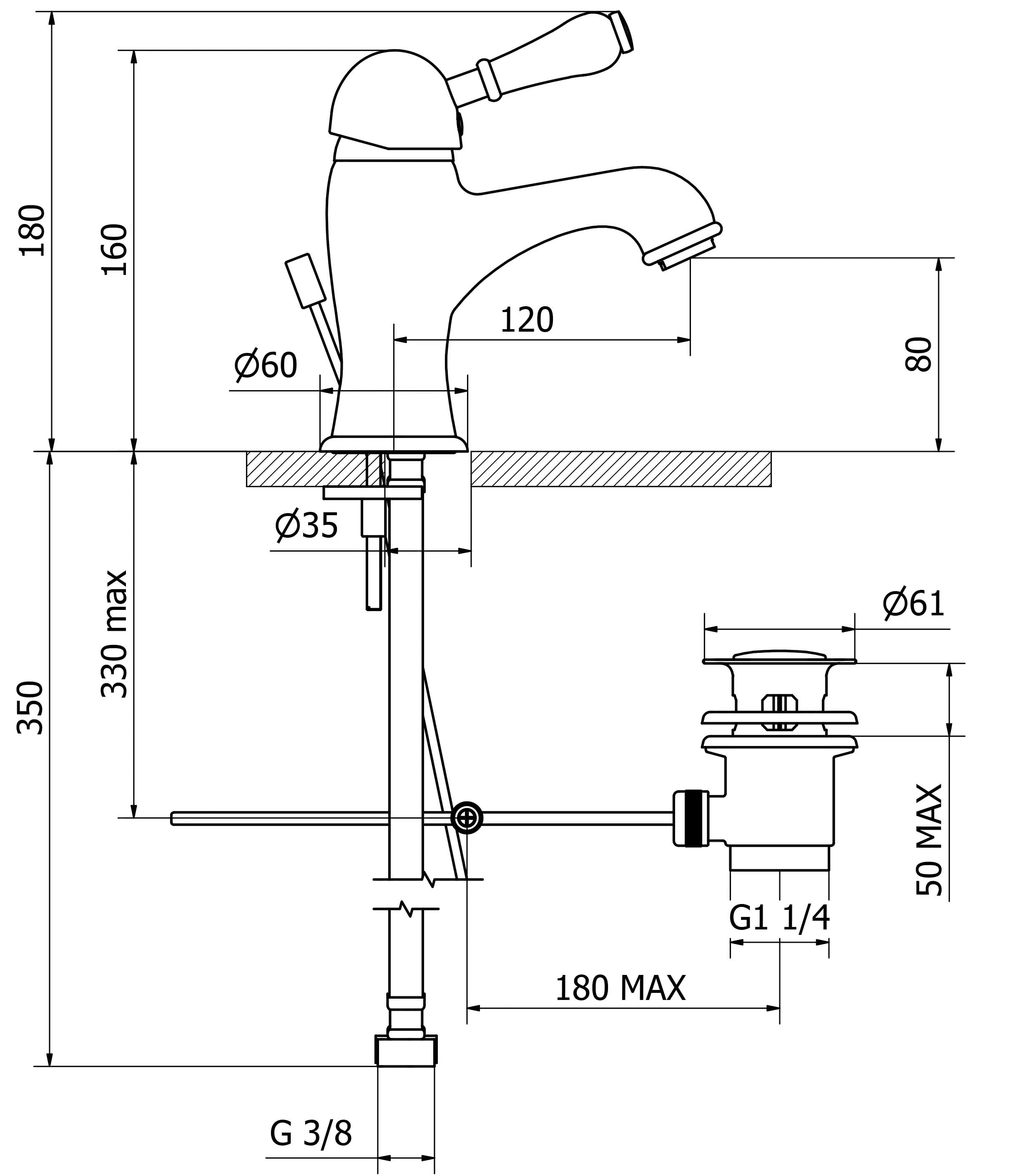 RUBINETTO MONOCOMANDO LAVABO CON MANIGLIA IN PORCELLANA SERIE DUNE