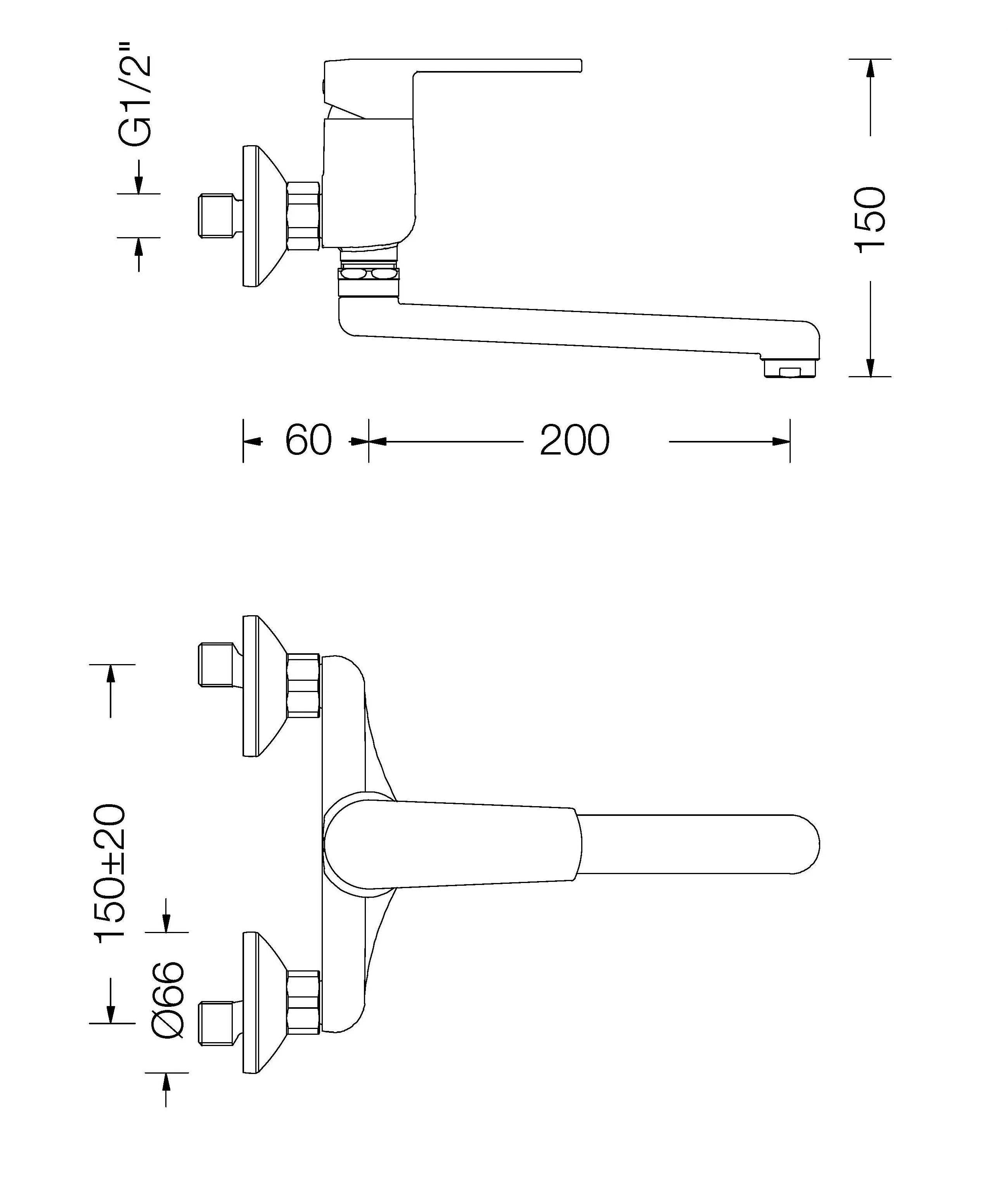 RUBINETTO MONOCOMANDO GRUPPO A MURO SERIE KLINT