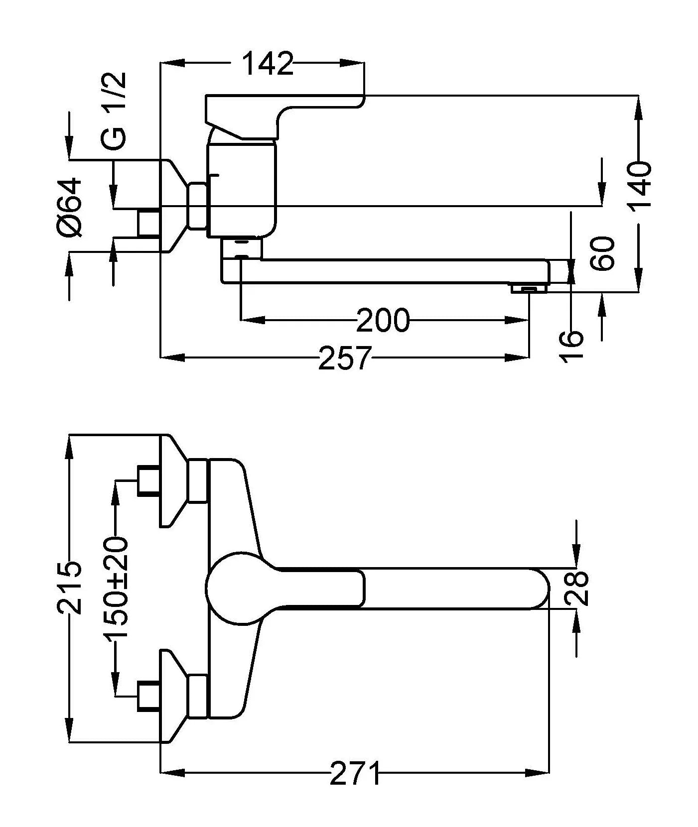 RUBINETTO MONOCOMANDO LAVELLO A MURO T-ONE