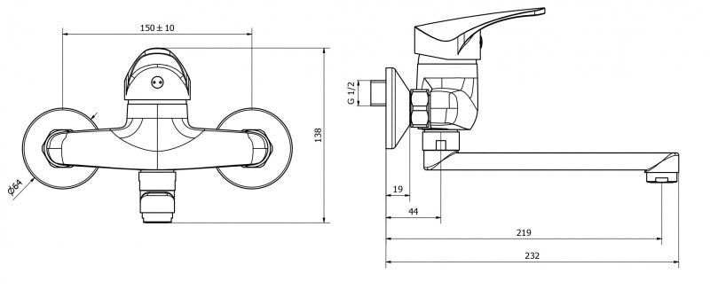 RUBINETTO MONOCOMANDO LAVELLO A MURO SERIE T-ONE