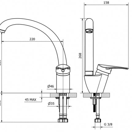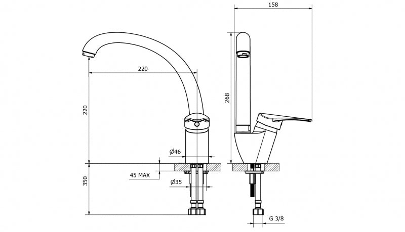 RUBINETTO MONOCOMANDO LAVELLO CANNA FUSA SERIE T-ONE
