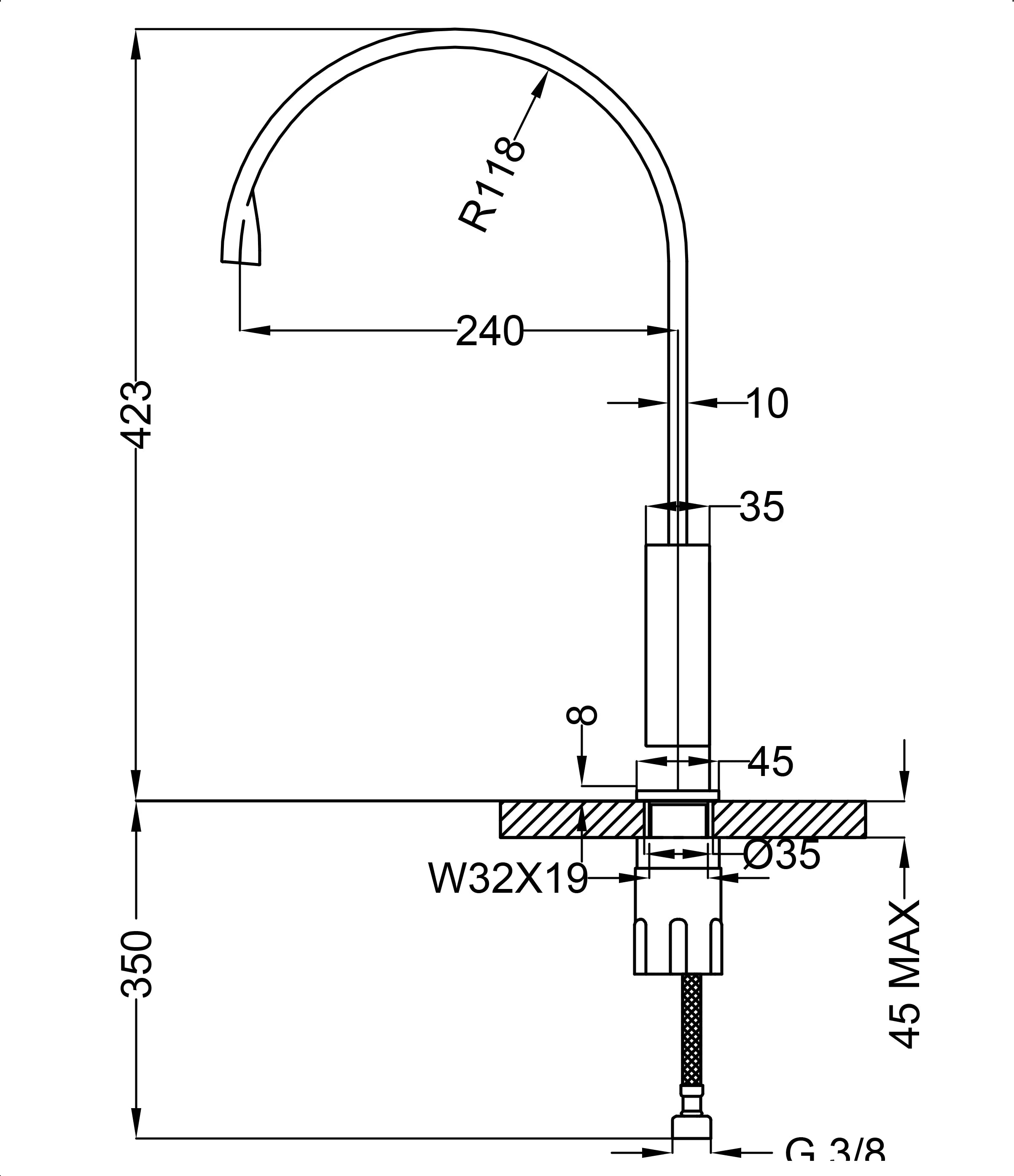 RUBINETTO MONOCOMANDO LAVELLO CON CANNA PIATTA