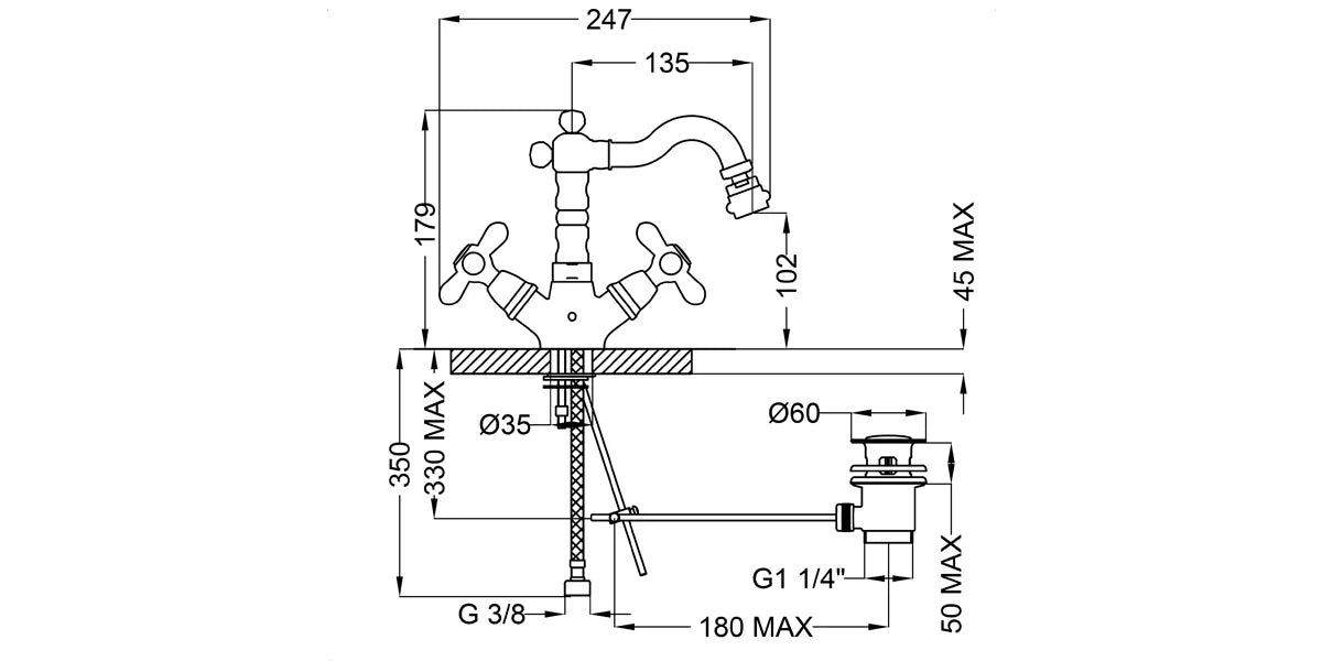 Teorema - Monoforo Bidet Canna Alta - Serie: Daisy - Colore: Bronzato - Articolo: 70418110X4