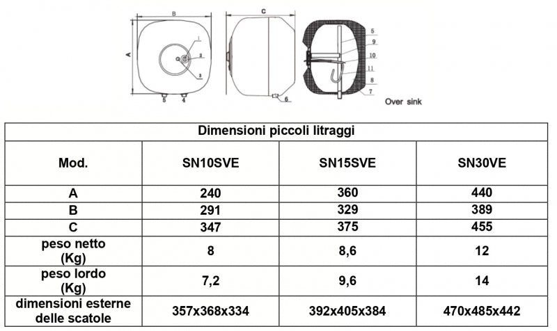 Isea - Scaldabagno elettrico 10 litri sopralavello - Garanzia 2 anni - Modello: Swing