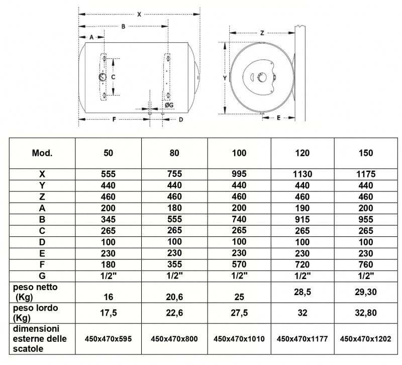 Isea - Scaldabagno elettrico orizzontale 50 litri flangiato versione destro - Garanzia 2 anni - Modello: Swing Per saperne di più