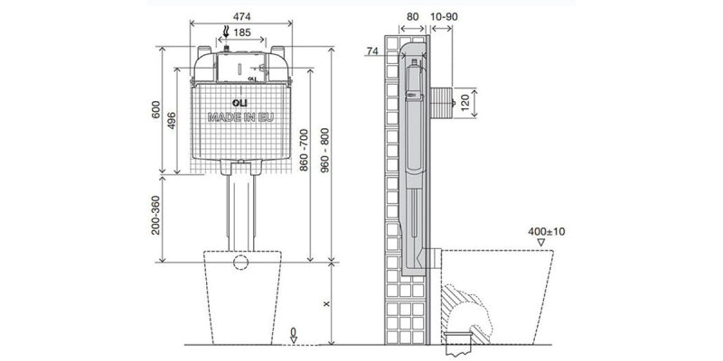 Cassetta di risciacquo ad incasso doppio scarico - Modello: Oli 74 Plus