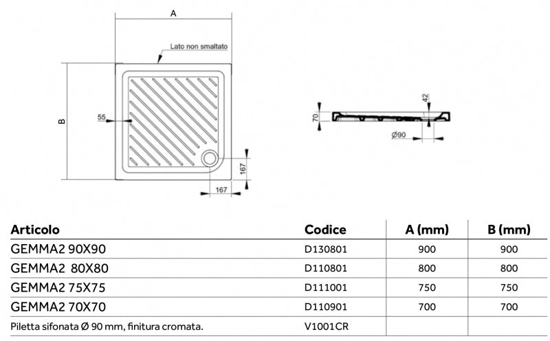 Piatto Doccia Quadrato 70x70 cm In Ceramica senza piletta - Altezza 7 cm Per saperne di più
