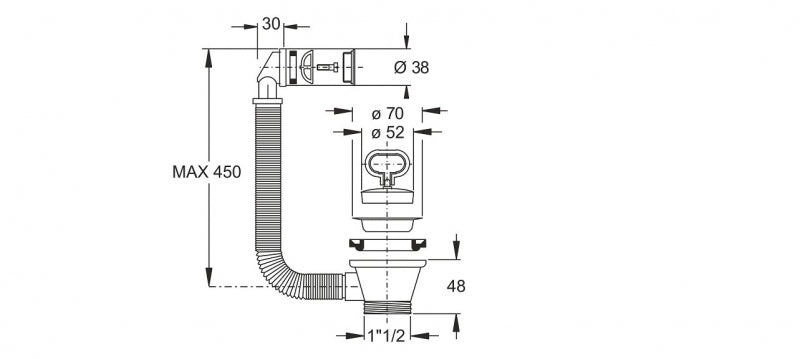 Bonomini - Piletta tradizionale per lavello cucina con troppo pieno con tappo 52 in gomma