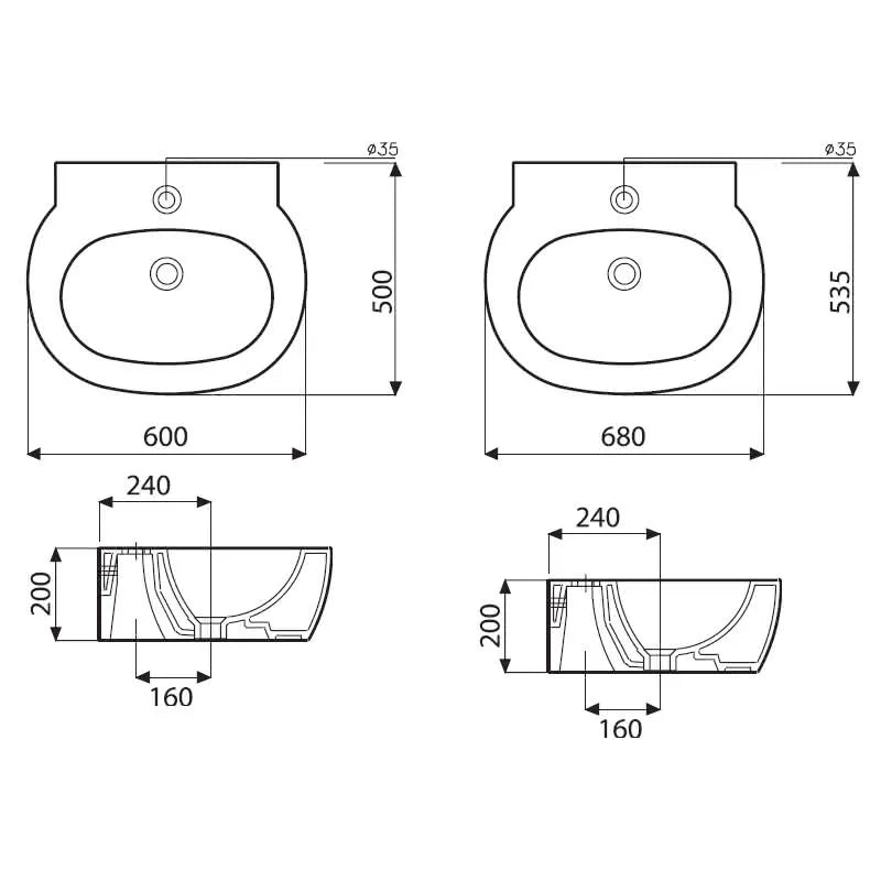 Geberit/Pozzi Ginori - Lavabo 68 Cm Porcellana Bianco - Serie: Easy2