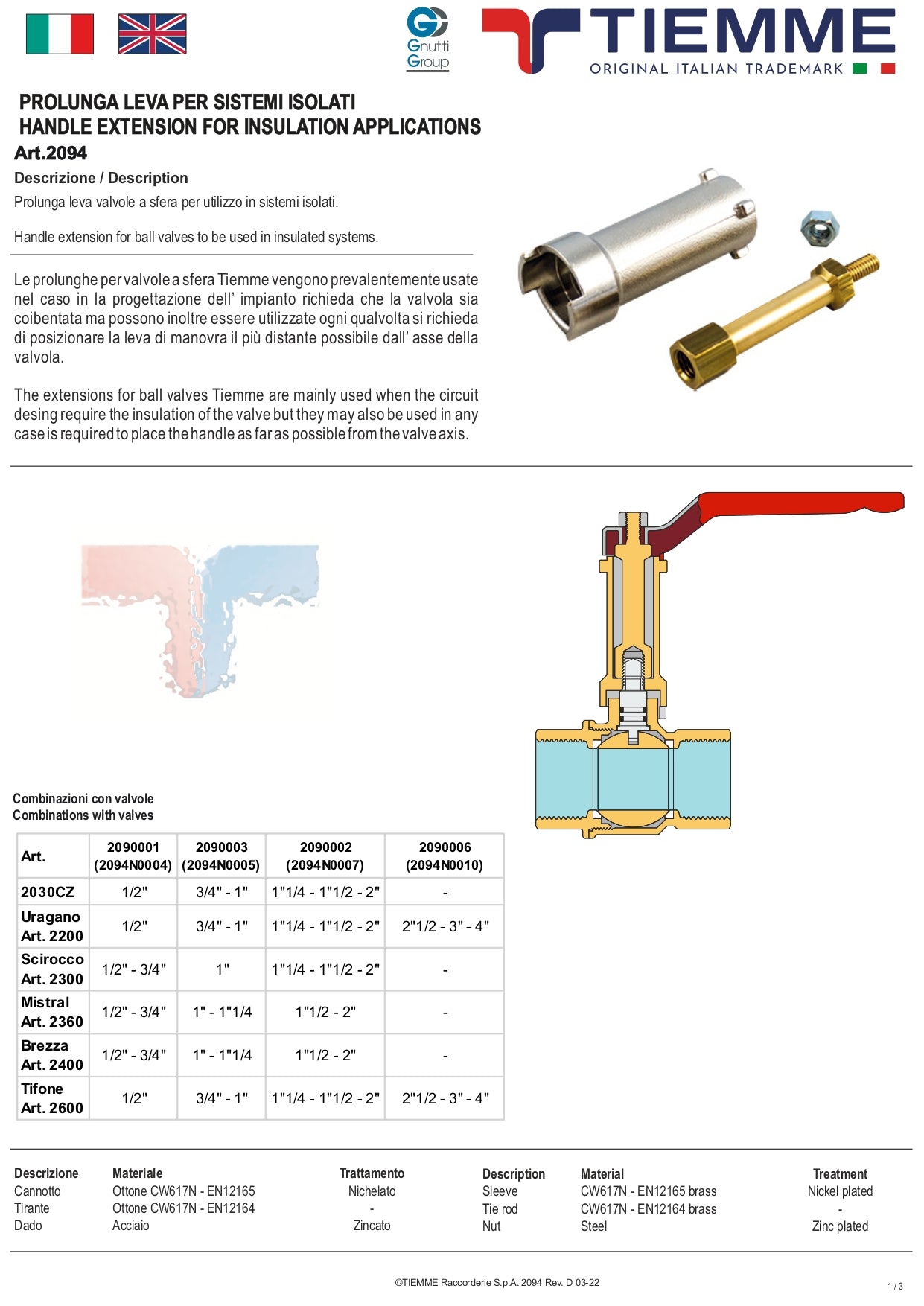 Tiemme - Prolunga Leva Per Valvole A Sfera (vedi scheda tecnica)