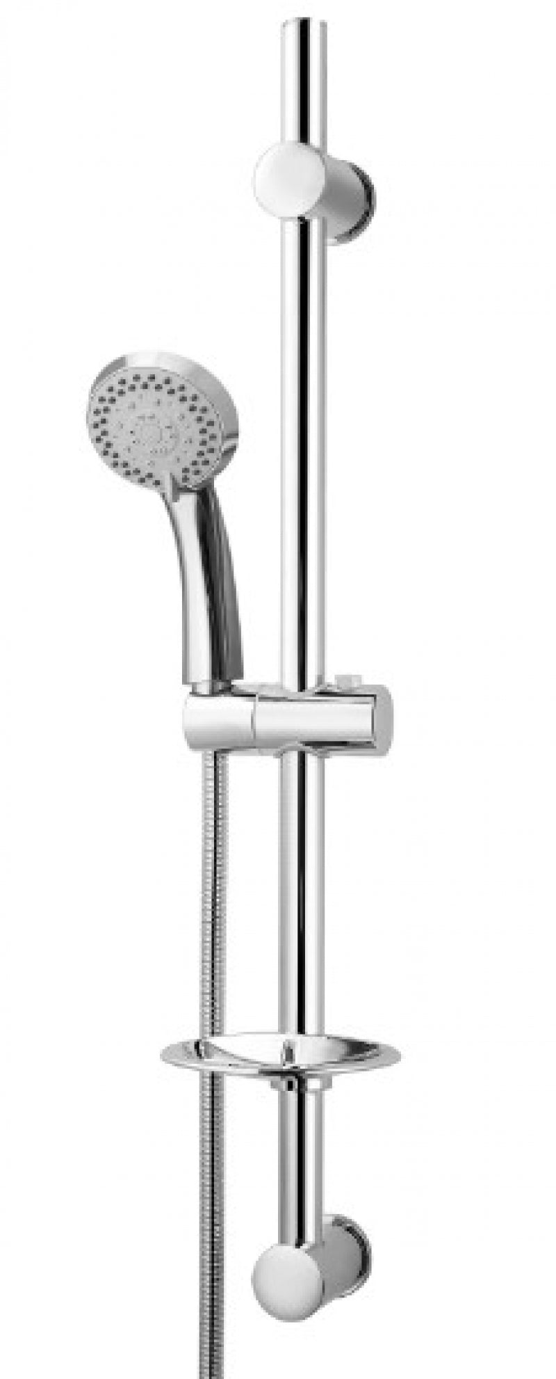 Saliscendi per doccia con doccetta 5 getti e portasapone con interasse regolabile