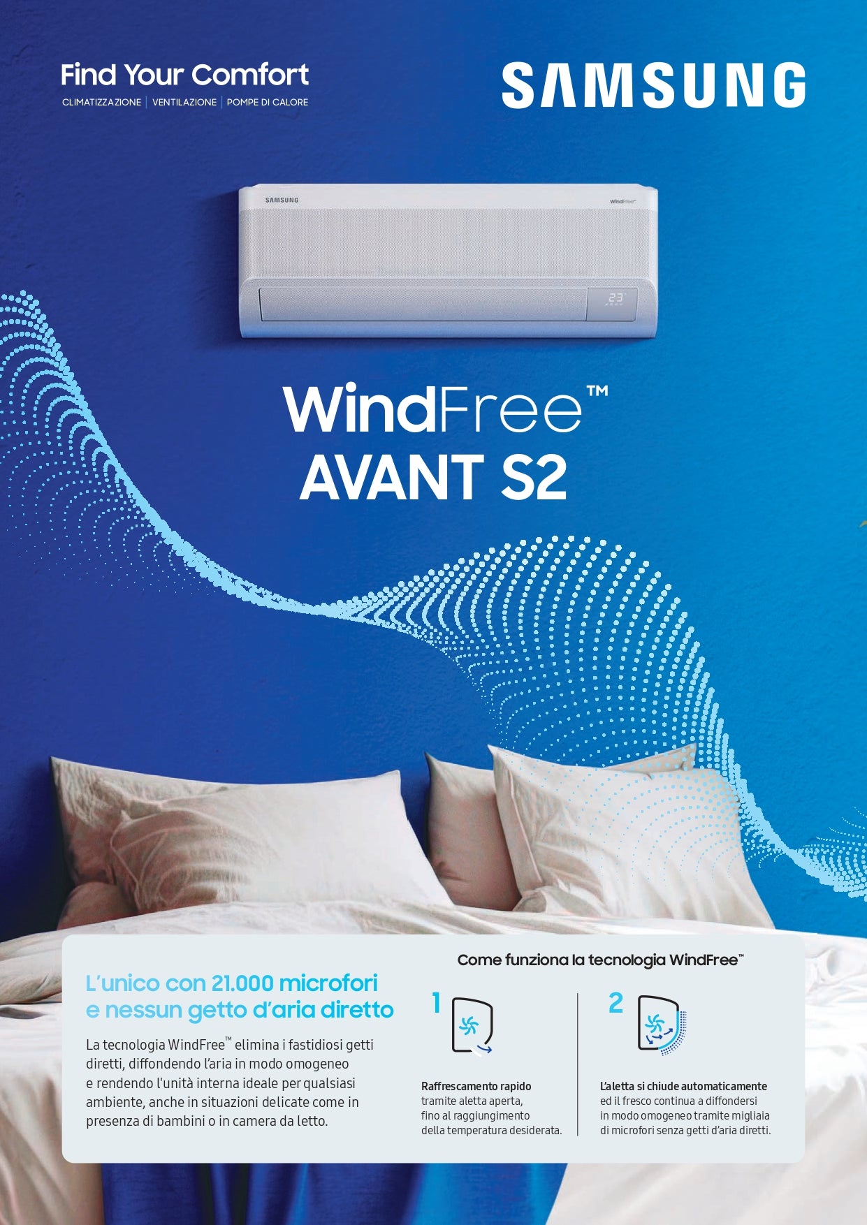 Samsung - Climatizzatore monosplit inverter 7.000 Btu gas R32 con Wi-fi incluso - Modello: WindFree Avanti S2