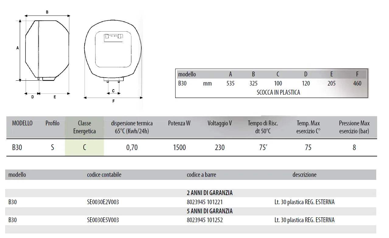 Scaldabagno elettrico verticale da muro 30 litri Braun Scaldabagno elettrico da 30 litri di elevata qualità, garantito 2 anni, Made in Italy.... Per saperne di più