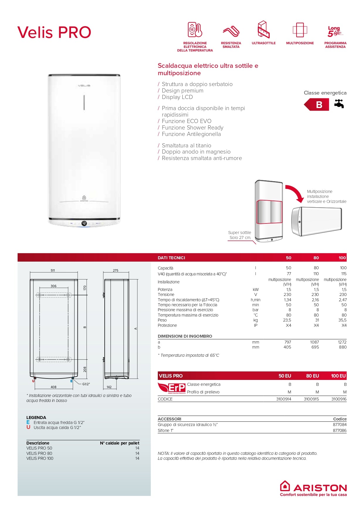 Ariston - Scaldacqua elettrico super sottile 80 litri - Modello: Velis Pro (N.B. Modello senza Wifi)