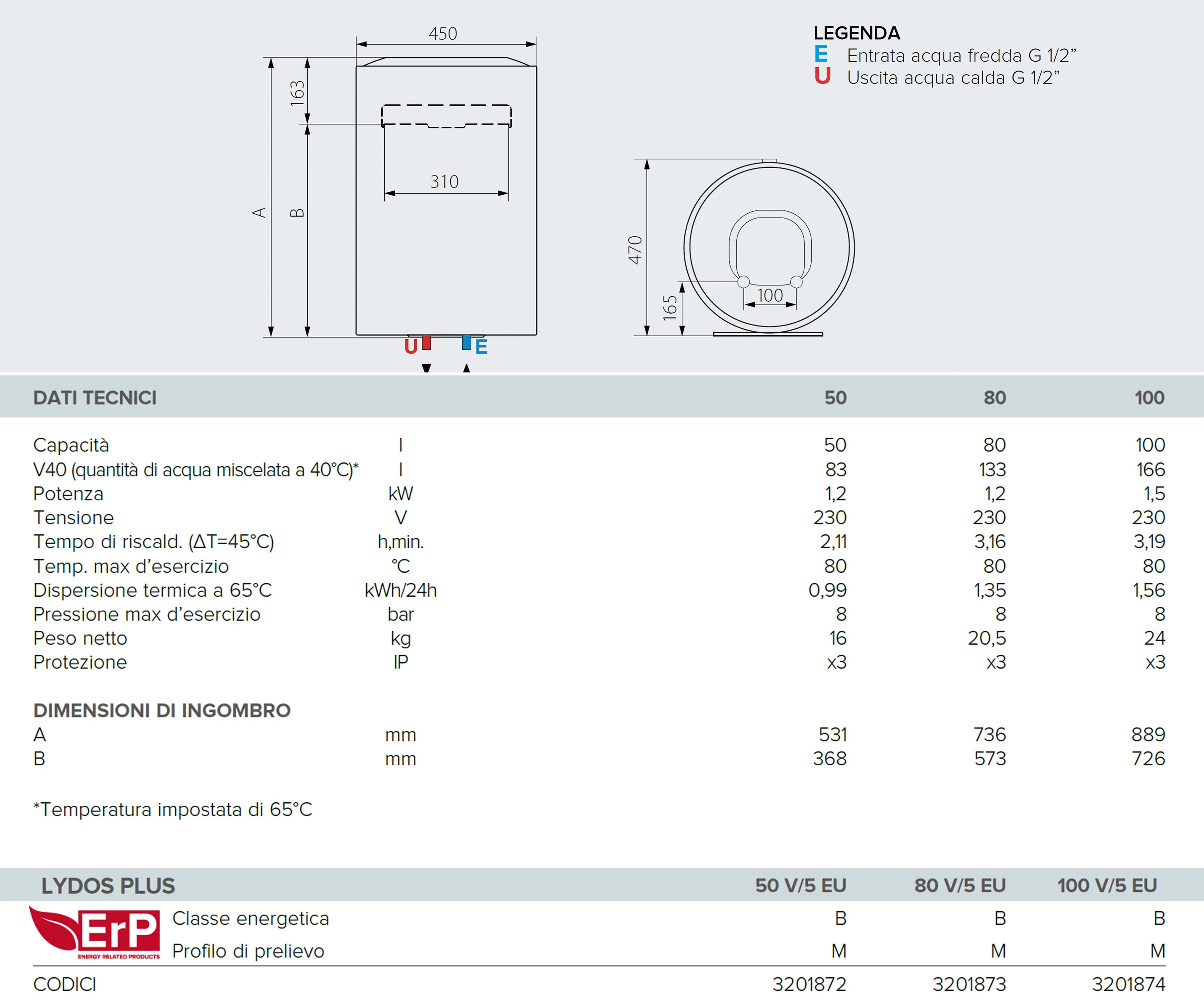 LYDOS PLUS 100 EU SCALDABAGNO PARETE ACCUMULO LT 100