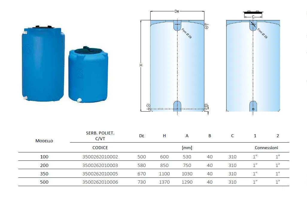 SERBATOIO IN  POLIETILENE CILINDRICO VERTICALE DA 200 LITRI Serbatoio in polietilene per lo stoccaggio di acqua a pressione atmosferica CARATTERISTICHE... Per saperne di più
