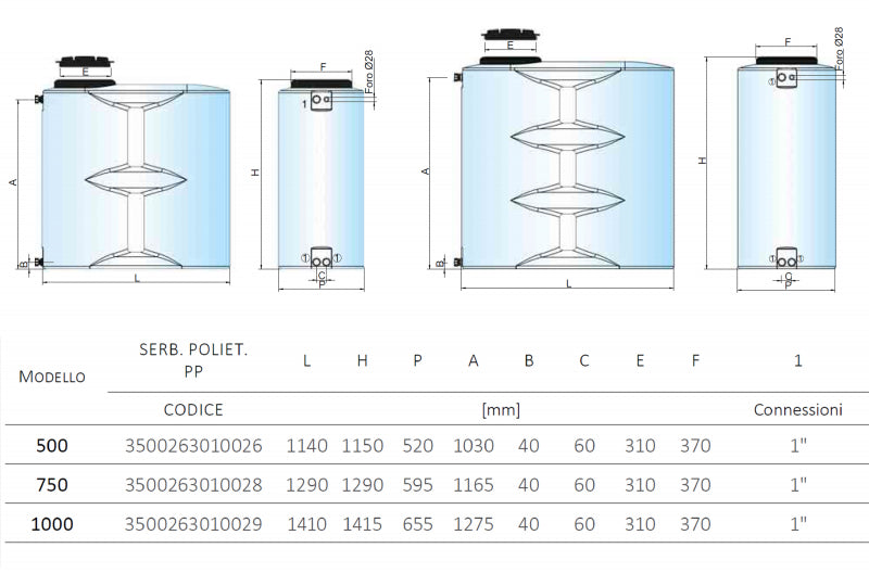 SERBATOIO IN POLIETILENE PARALLELEPIPEDO DA 750 LITRI Serbatoio in polietilene per lo stoccaggio di acqua a pressione atmosferica CARATTERISTICHE Stoccaggio... Per saperne di più