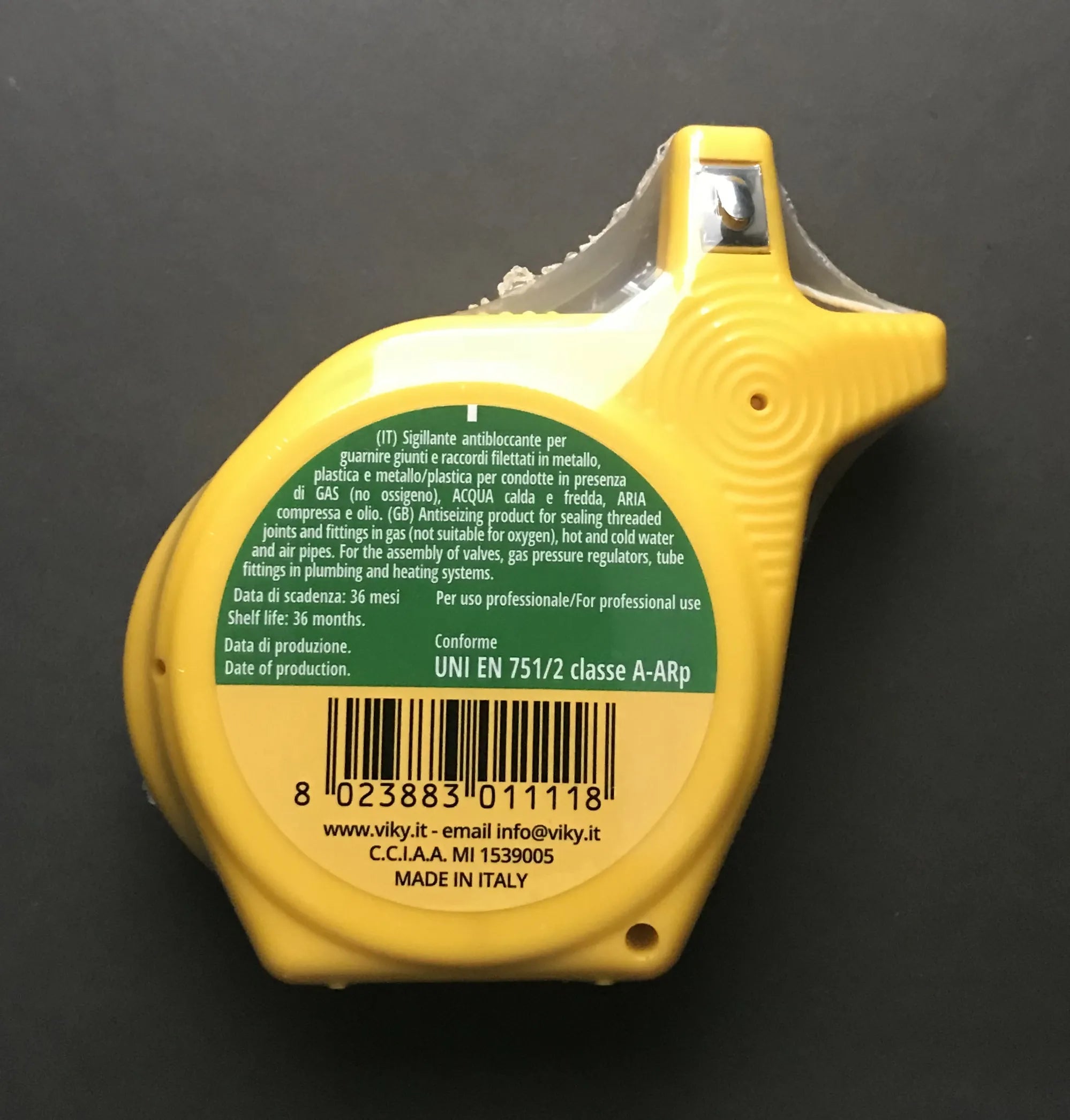 Sigillante antibloccante per guarnire giunti e raccordi filettati in metallo, plastica e metallo/plastica per condotte in presenza di gas metano (no ossigeno), acqua calda e fredda e aria compressa.