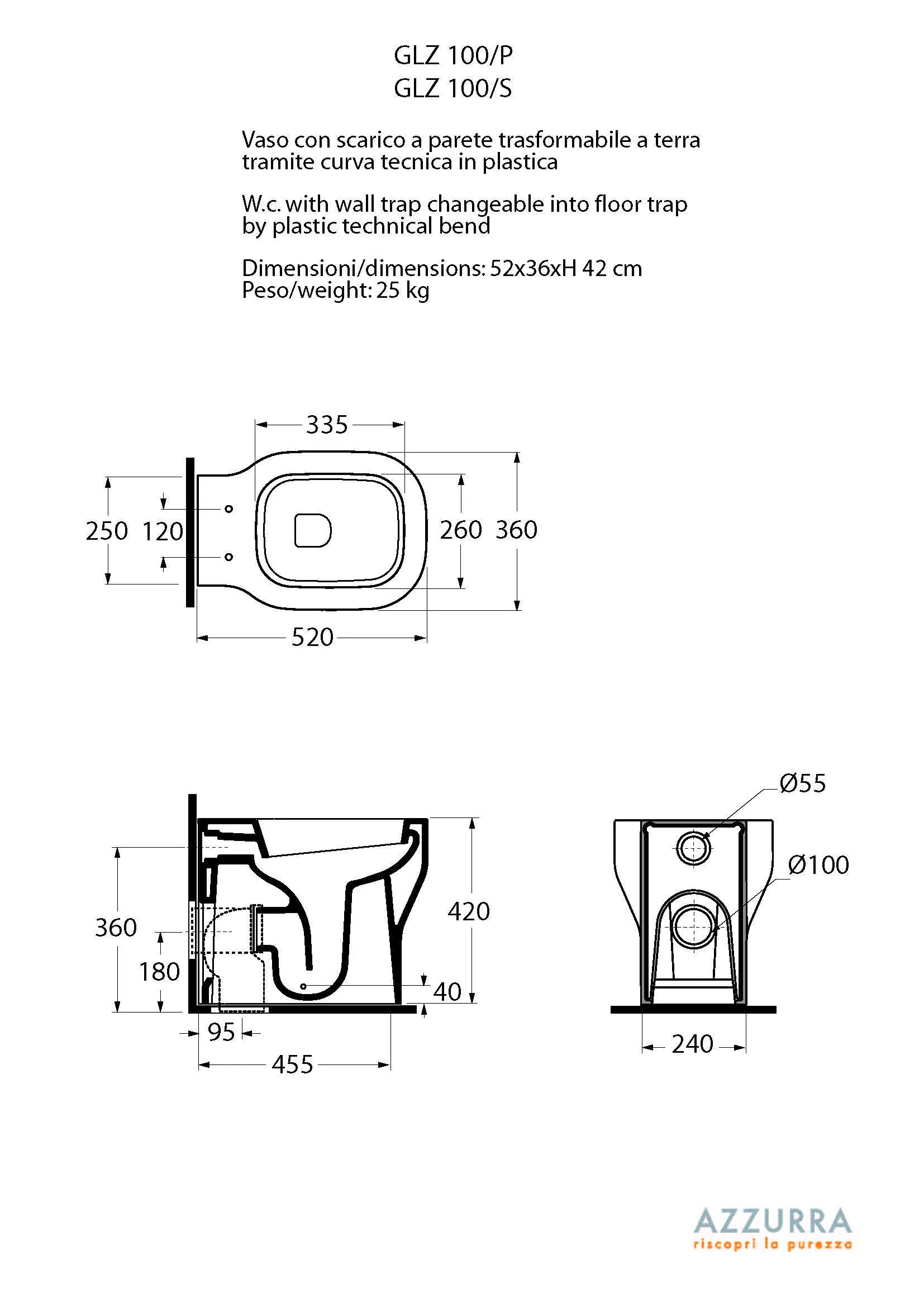 Azzurra - Vaso Filo Parete Porcellana Bianco - Serie: Glaze (Senza Coprivaso)