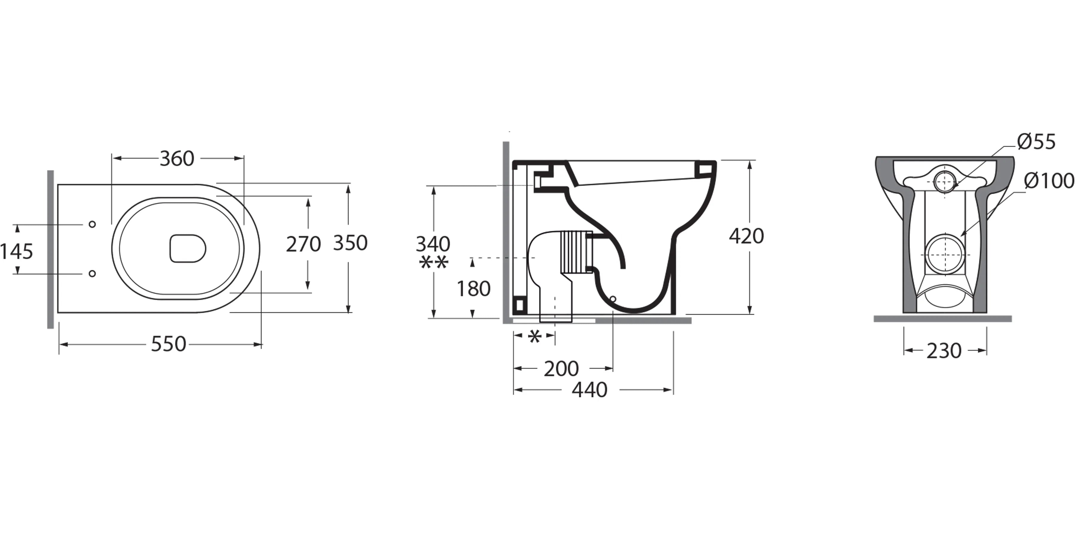 Azzurra - Traslato Vaso Filo Parete Con Scarico Porcellana Bianco - Serie: Nuvola (Senza Coprivaso)