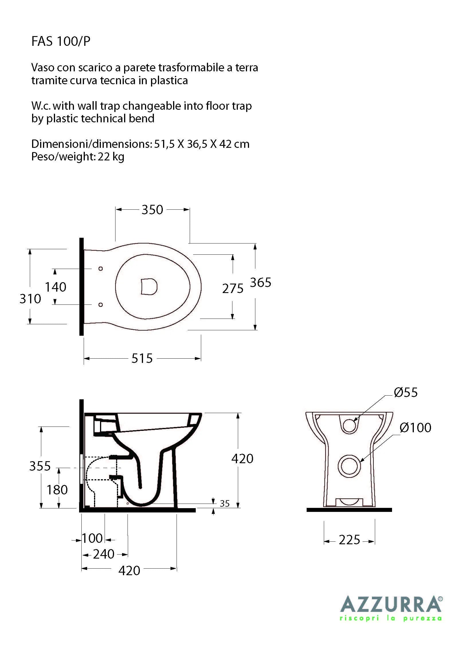 Azzurra - vaso filo parete porcellana bianco - serie: fast (senza coprivaso) Per saperne di più